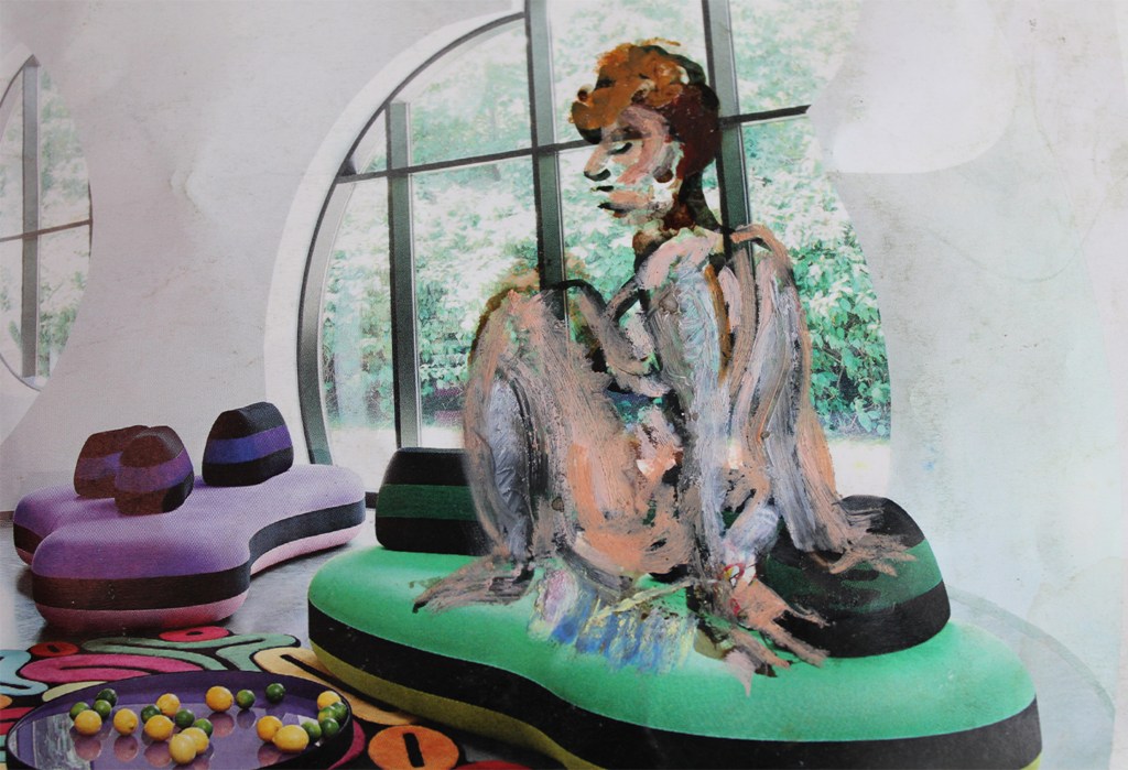 This work was inspired by curiosity, it is one of the first drawings on up-cycled papers. This one has been in two shows so far; at the EVAC and Hygge online show. I hope viewers feel nested and put themselves into a comfy headspace. I chose the medium because I wanted a dimensional thickness from the oil pastel.
